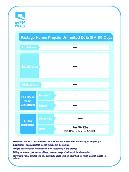 مسبقة الدفع لا محدود - 30 يوم