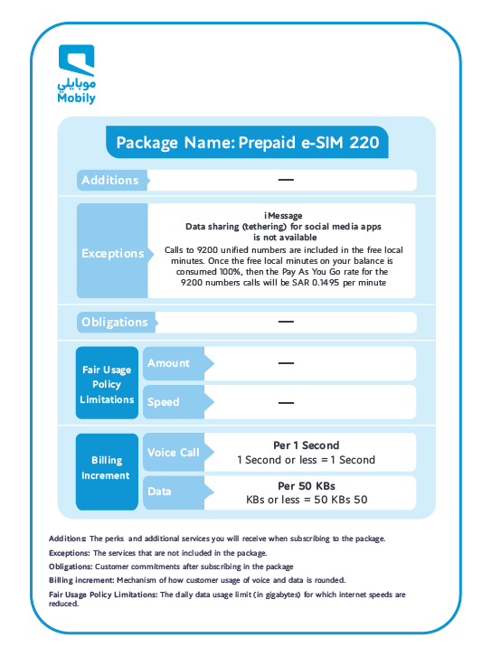 Calls to 9200 unified numbers will be free of charge and it will be deducted from the free local minutes available on the bundle. Once the free local minutes of the bundle are consumed 100%, then the Pay As You Go call rate for the 9200 numbers will be SAR 0.1495 per minute.